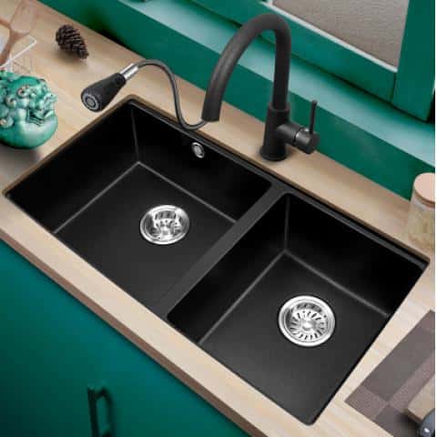 法恩莎水槽石英石双槽家用洗菜盆厨房水槽置物架加厚洗...