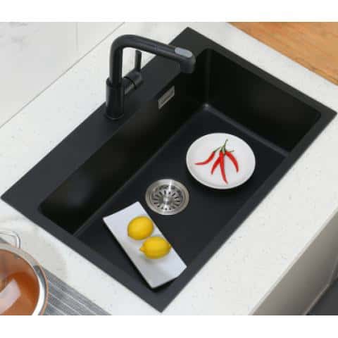 法恩莎水槽石英石双槽家用洗菜盆厨房水槽置物架加厚洗...