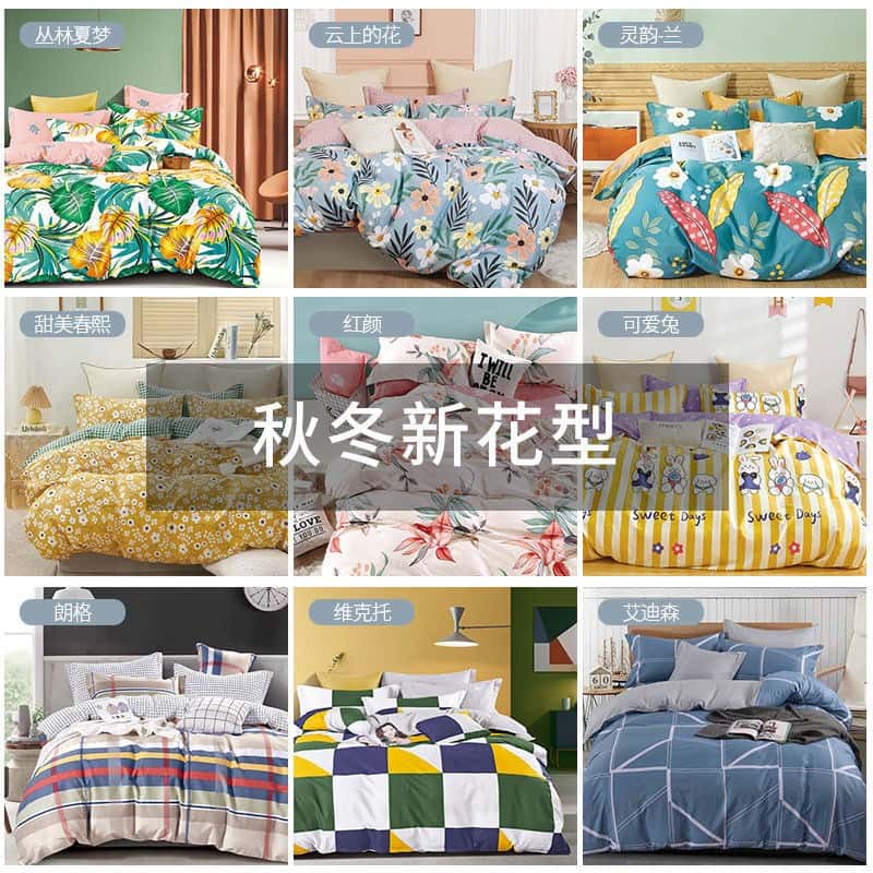 - 适用床尺寸: 0.9m三件套被套150*200cm 1.2m三件套被套150*200cm 1.5m四件套被套150*200cm 1.8m四件套被套180*220cm 2.0m四件套被套200*230cm 2.2m四件套被套220*240cm